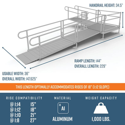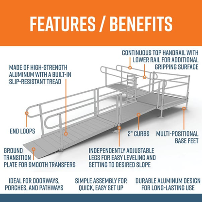 PATHWAY 3G 18 ft. L-Shaped Aluminum Wheelchair Ramp Kit with Solid Surface Tread, 2-Line Handrails and 5 ft. Turn Platform