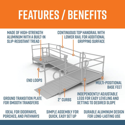 PATHWAY 3G 10 ft. L-Shaped Aluminum Wheelchair Ramp Kit with Expanded Metal Tread, 2-Line Handrails, 4 ft. Turn Platform, and 4 ft. Top Platform