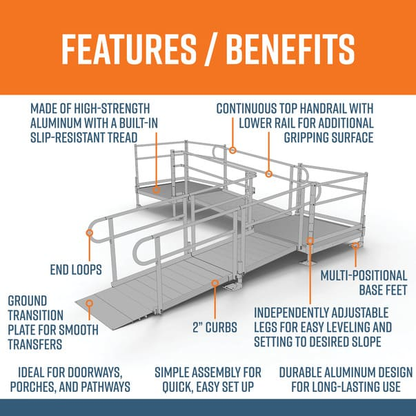 PATHWAY 3G 14 ft. L-Shaped Aluminum Wheelchair Ramp Kit with Solid Surface Tread, 2-Line Handrails, 4 ft. Turn Platform, and 4 ft. Top Platform