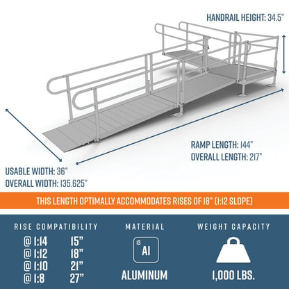 PATHWAY 3G 18 ft. L-Shaped Aluminum Wheelchair Ramp Kit with Solid Surface Tread, Vertical Picket Handrails and 4 ft. Turn Platform