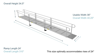 PATHWAY 3G 24 ft. Straight Aluminum Wheelchair Ramp Kit with Expanded Metal Tread, 2-Line Handrails and 5 ft. Top Platform