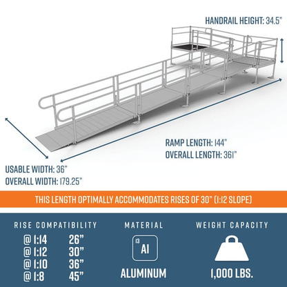 PATHWAY 3G 30 ft. L-Shaped Aluminum Wheelchair Ramp Kit with Solid Surface Tread, Vertical Picket Handrails, 4 ft. Turn Platform, and 4 ft. Top Platform