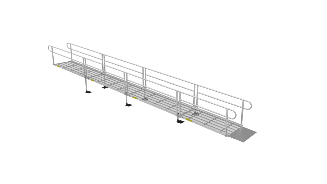 PATHWAY 3G 30 ft. Straight Aluminum Wheelchair Ramp Kit with Expanded Metal Tread, 2-Line Handrails and 5 ft. Top Platform