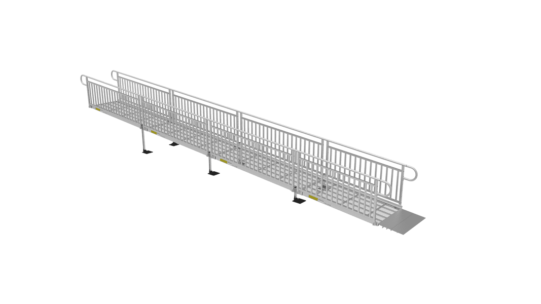 PATHWAY 3G 30 ft. Straight Aluminum Wheelchair Ramp Kit with Expanded Metal Tread, Vertical Picket Handrails and 5 ft. Top Platform