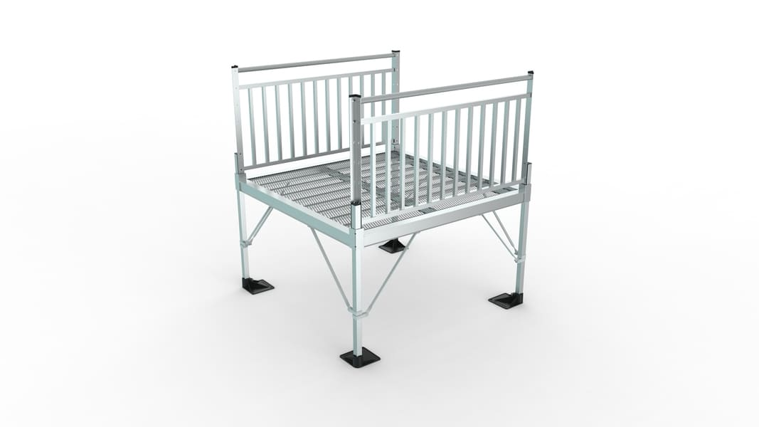 This 30’ ramp kit includes one 5' x 5' top platform (can be configured for straight, left, or right entry), five 6' ramps, handrails, and all other necessary components.