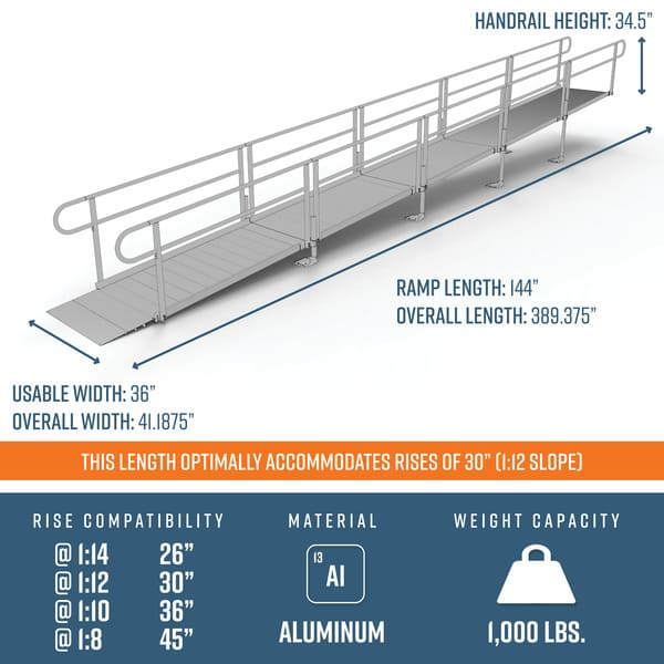 PATHWAY 3G 30 ft. Straight Aluminum Wheelchair Ramp Kit with Solid Surface Tread, 2-Line Handrails and No Top Platform